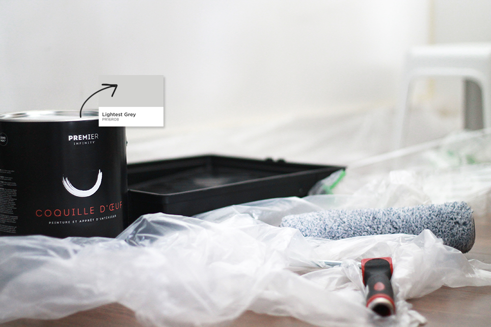 I decided to go with Lightest Grey (shocking I know), and only applied two coats (colour number is PR16RO8 and the paint is from their Premier Infinity Collection, in case you’re interested). The change is not dramatic at all and you’ll probably have a hard time spotting the difference (before and after at the end) but let me tell you, you can definitely tell in person and the colour I chose is exactly what I was looking for. A subtle but much needed change that got me into shelf-decorating (I have styled those shelves like a million times!), and now I’m most likely painting my dining and living in the same colour. Here’s how the wall looks now, though I’m still waiting for some frames to arrive so this will change again!