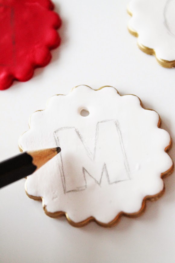 Here’s another easy peasy ornament idea using clay: gold leaf monogrammed ornaments. It’s such a great last minute little detail that I’m sure will be appreciated, I mean, who doesn’t love monograms? They just make everything more personal, hence special 😉 I made sets with the initials of every household member and I wrapped them in little bags for each family 🙂
