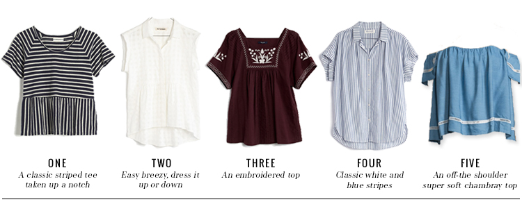 ONE (wear it with skinny jeans + leather jacket) | TWO (wear it with faux leather leggings) | THREE (wear it with denim cut offs + gladiators) | FOUR (wear it with distressed jeans) | FIVE (wear it with white denim)