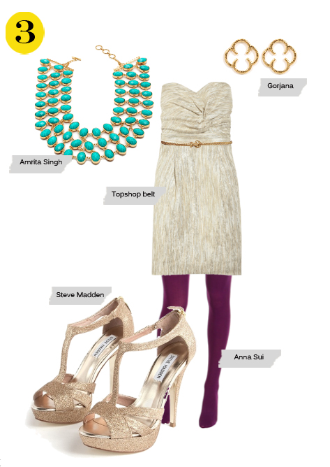 Amrita Singh necklace, Alex Monroe earrings, Yves Saint Laurent clutch, Modcloth tights, Gianmarco Lorenzi Sling back platforms.