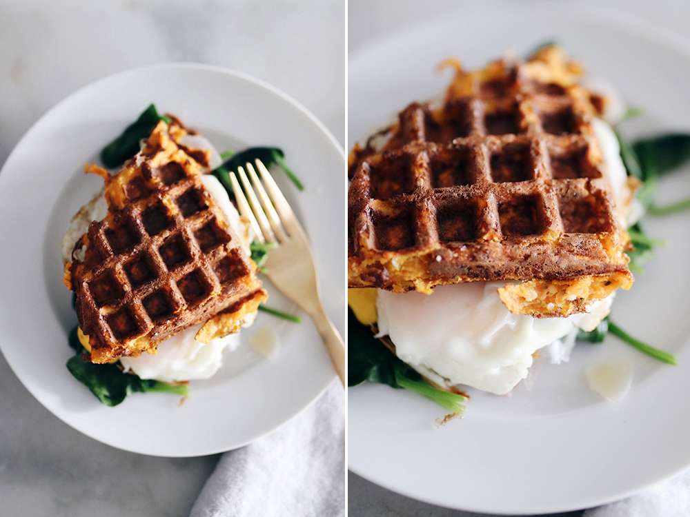 Have you tried sweet potato waffles? This recipe is basically sweet potato and eggs, and the best part is that you don’t even have to cook the sweet potatoes! I like making a batch of these and store them in a ziploc in the freezer. They are a great option if you don’t like starting the day on a sweet note. I like to top them with eggs (fried or scrambled) and add some greens. PS: for this recipe just click here 😉