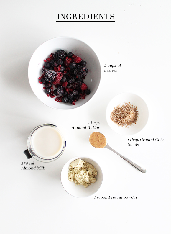 Just throw it all in your blender (plus some ice if you’re using fresh berries) and consume immediately after your workout or as a healthy snack 😉