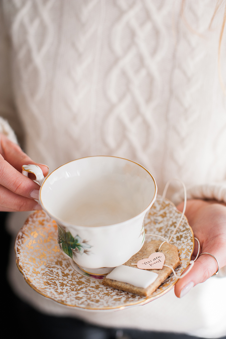 For our Galentine’s High Tea (which I’ll be posting next week!) we made these super cute tea bag cookies that in all honesty turned out to be easier to whip up than what you’d think. The idea came from this recipe; I just used a different cookie dough and decided to give them a little Valentine’s spin.