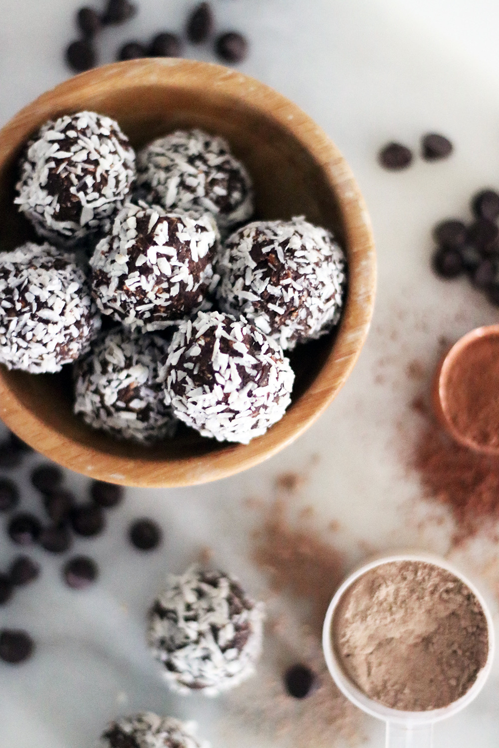 I have mentioned before I have a sweet tooth, but as someone who likes to eat has healthy as possible without going to extremes (I do believe in balance and indulging here and there), I’m often experimenting with recipes to tame my cravings without falling for empty calories. Is it possible? Of course it is!! Consider these protein packed energy bites like chocolate truffles, the healthy kind that is! They are sweet, delicious and they will for sure tame that afternoon sweets craving. Plus, they are great to have before and/or post workouts, or whenever you need a pick-me-up snack. Make a batch, store in a tight container in the fridge and take out (and eat!) as needed!