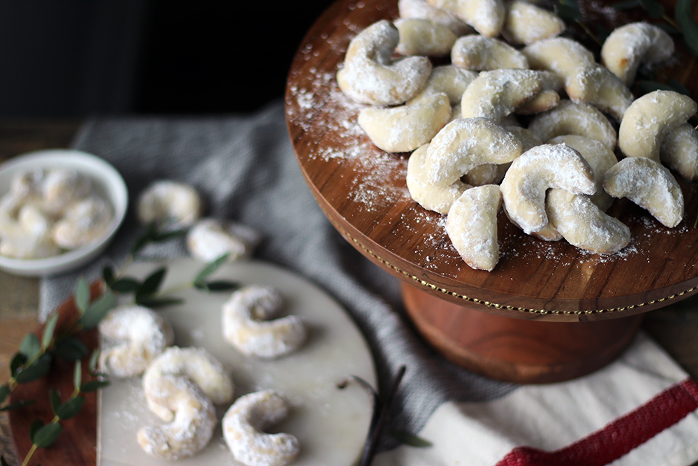 If there’s one thing in my family that defines our Christmas, is, without doubt, vanillekipferl cookies (also known as almond crescents). Basically, and to put it simply, Christmas and these delicious austrian cookies go hand in hand for us. My grandmother used to bake hundreds and hundreds (I’m not kidding when I say hundreds) of them each Christmas to hand out to family and close friends and among all the different types of cookies she would bake, these were everyone’s (and I mean EVERYONE’S) favourite. Unless you have a nut allergy I seriously don’t see how you wouldn’t like these, so if you are unsure about baking a batch or two, trust me, they will be a hit.