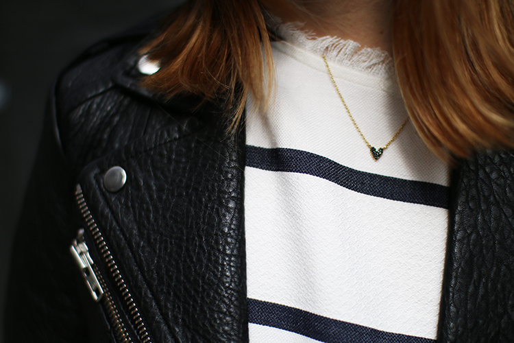 I’m sure you have noticed that I love dainty jewelry, especially rings and earrings. I’m not so much of a bracelets wearer, but I do love a ring party, an earring party (I have 5 piercings and would love to get another one!), and some layered necklaces. I got these Mejuri pieces, (have you heard of them? They are somewhat new to me and love their collection!) a couple of weeks ago and I haven’t stop wearing them, especially the heart necklace. I like how the fact that it’s black adds a bit of an edge you know? I seriously haven’t taken it off, not for running, not for showering, it’s been glued to my neck ever since!