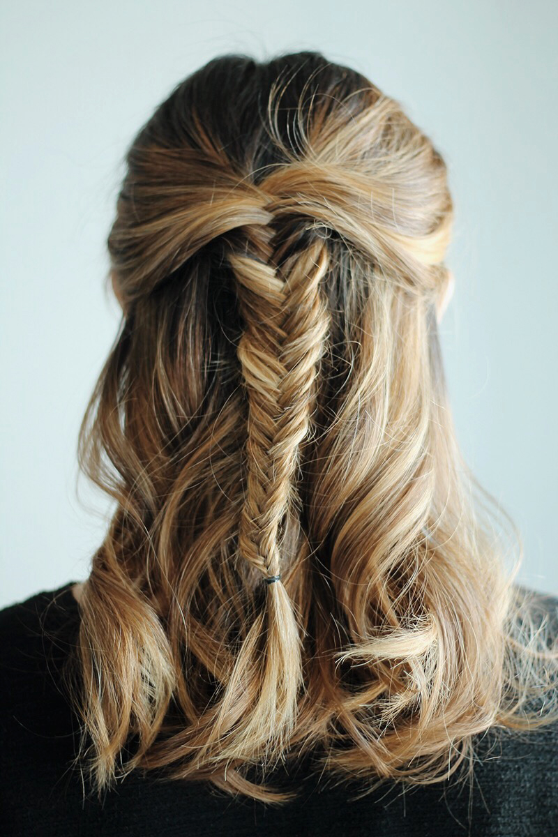 4. Grab a small strand of hair from the right and cross it over the left creating an “X”.