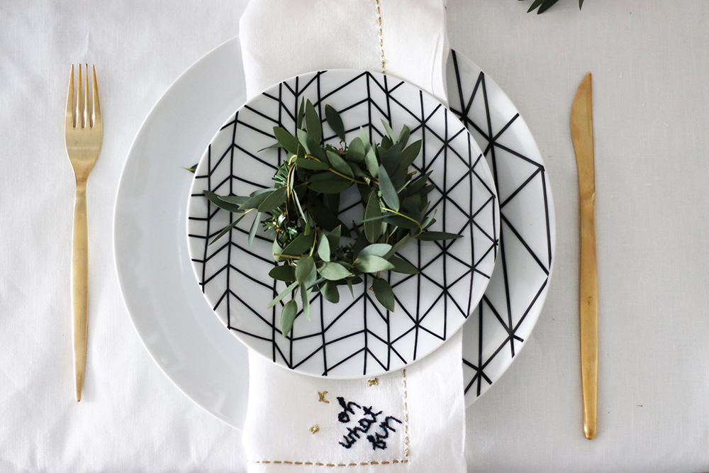 I felt super inspired to get back on the DIY bandwagon, something I haven’t done much lately and that I was really missing! I made some cute and super easy mini wreaths to dress the table (also sharing the how soon!), and probably my favourite diy to date: holiday embroidered napkins 🙂 (you can find the DIY here).