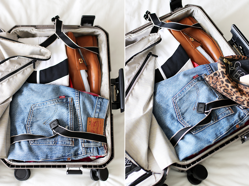 TIP #3: I usually pack my shoes in cotton bags (like these) but if I’m traveling with new shoes that I haven’t worn I skip the bag. But, regardless of how I pack them, I ALWAYS stuff them with smaller items for two reasons: one, to use space efficiently, and two, to keep their shape. Same goes with hats, which I place at the centre of the suitcase and fill the space around until it’s all even.