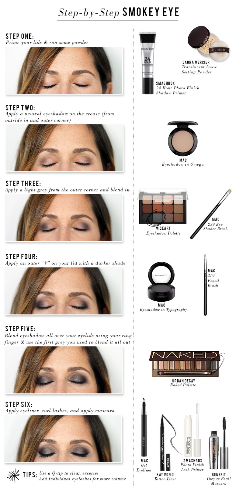 Smashbox 24 Hour Photo Finish Shadow Primer (makes a real difference!) | Laura Mercier Translucent Loose Setting Powder | MAC Eyeshadow in Omega | MAC Eye shader Brush | Viseart Eyeshadow Palette | MAC Eyeshadow in Typographic | MAC 219 Pencil Brush | Urban Decay Naked Palette (I find that everyone uses this palette, it’s a good one! Also love this one) | MAC Gel Eyeliner | Kat Von D Tattoo Liner | Benefit They’re Real Mascara (this one is also my fave) | Makeup by Velsie Mak | Hair By Cabello by Carolina
