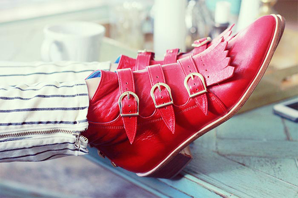 After this post, I was obsessed on finding a pair of red booties, and in fact, I found the perfect ones, which I was so happy to get (price and style were right up my alley!) but unfortunately the shipping cost was outrageous! ($40 people, $40!). So of course, they didn’t happen. Still, red has been on my mind a lot and here are some images that have caught my eye 😉