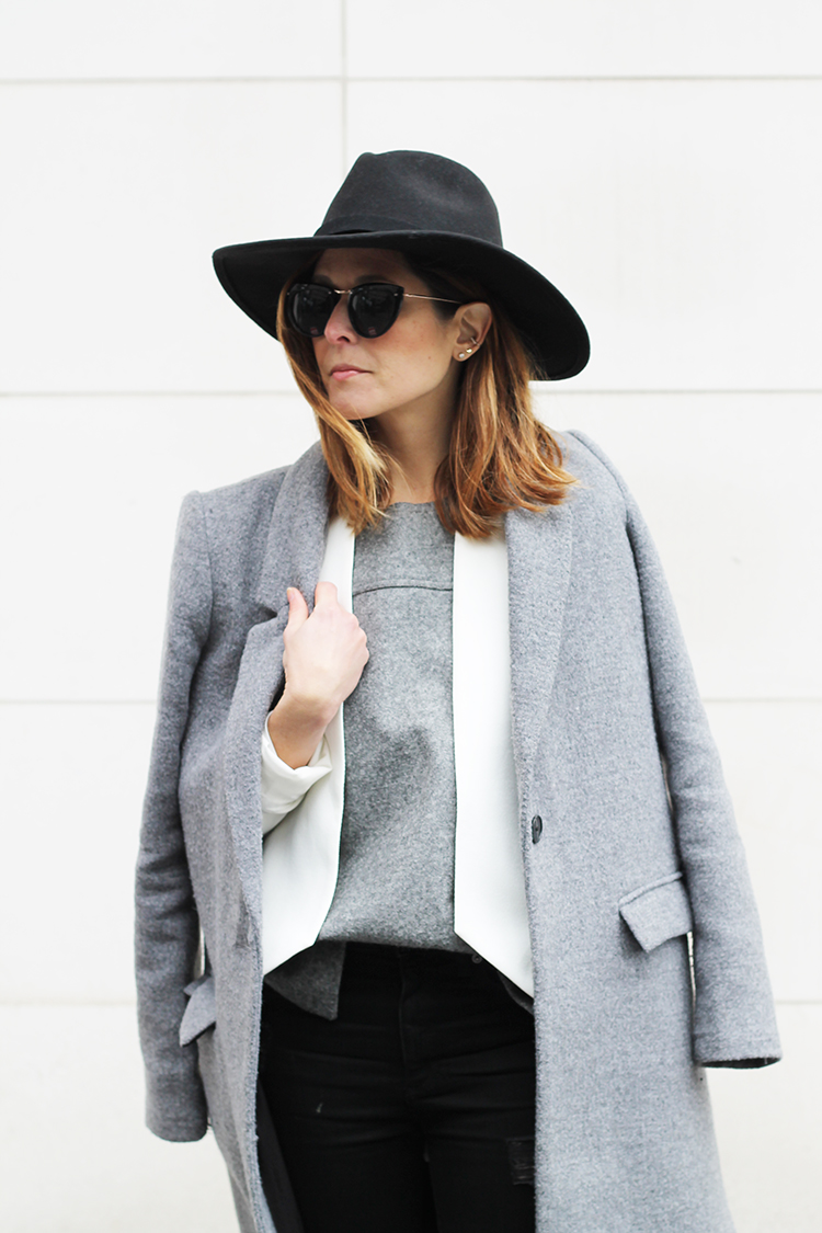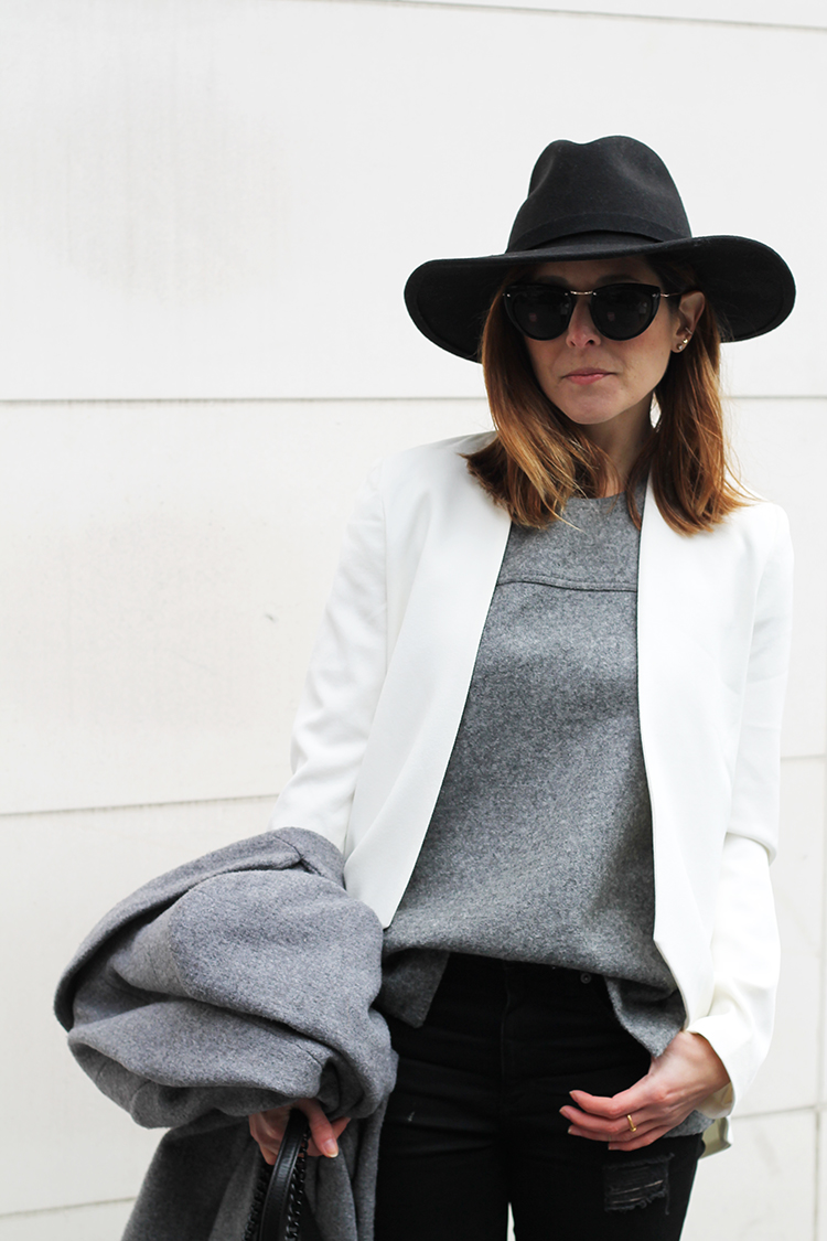 WEARING: Joe Fresh Wide Brim Fedora | Spitfire Helix Sunglasses (similar) | Madewell Wool Vest (old, veeeery similar) | Blaque Label Sculpted Blazer | Zara Coat (similar) | Gap Resolution Skinny Jeans | Zara Flats (similar) | Rebecca Minkoff Love Crossbody Bag
