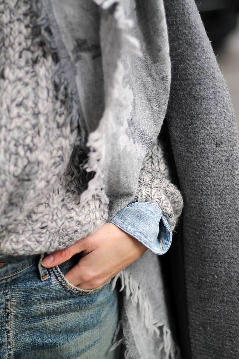 Wearing: Spitfire Sunglasses (very similar) | Gap Sweater (sold out, similar, similar) | Zara Coat (old, similar) | Citizens of Humanity Corey Straight Leg Ripped Jeans | J.Crew Essie Pumps (gifted, on sale!) | Rebecca Minkoff Love Cross body bag | Aritzia Scarf