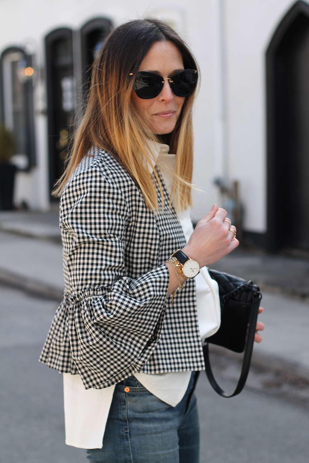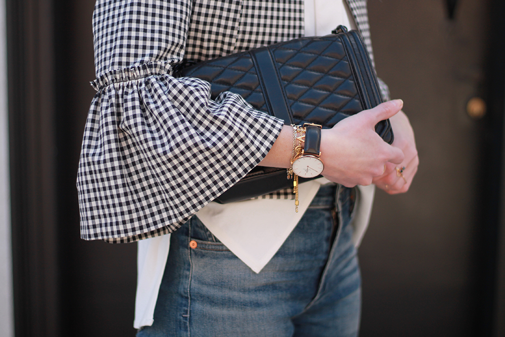 I’m not one to dress overly girly (I’m sure you have noticed), but I loved the sleeves of this jacket (it’s available in solid blush and black here) the moment I saw it and I love how I can throw it on a simple look and feel a bit more dressed 😉 Check the full post here.