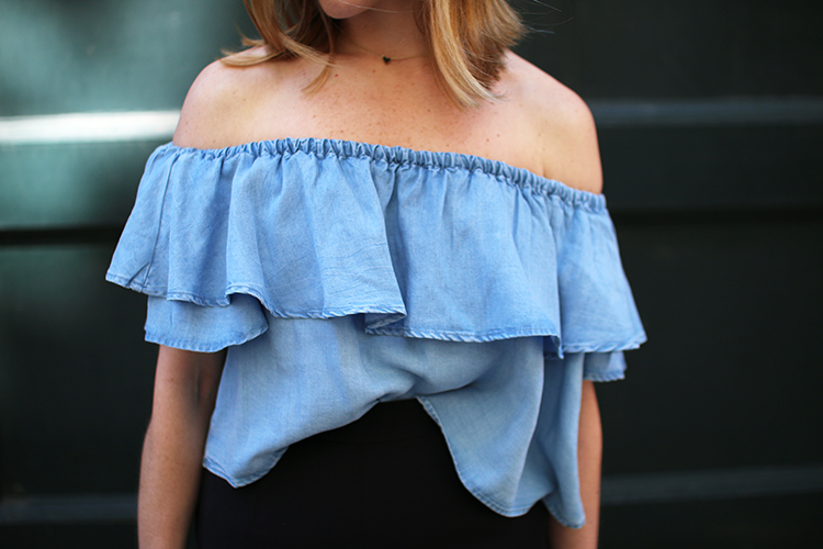 Happy Monday, hope you all had a great weekend! Being the denim and chambray lover that I am I couldn’t help it but to fall in love with this off-the-shoulder number from Zara. If you’re a fan of chambray and are digging the whole off-the-shoulder trend then you’re going to love this top. It’s super lightweight, slightly cropped (looks better with high-waisted bottoms) and it won’t cost you an eye. I’m also loving this top (so pretty!), this one and this one, in case you’re looking for off-the-shoulder options 🙂