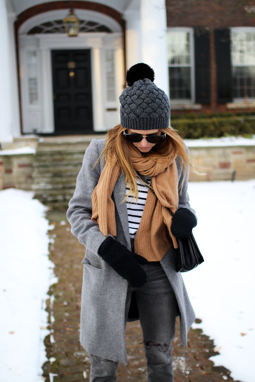 So…..here I am trying to catch up and hopefully get back into the regular routine around here. I can’t wait to tell you more about Mont Tremblant (it was my first time there and LOVED it!), but in the meantime here’s a look at a favourite colour combo 🙂 Anyone else obsessed with grey and camel? I’ve been loving these colours together and on days when the weather is nice I don’t think twice about ditching the parka and wearing a wool coat, such a nice breather 😉