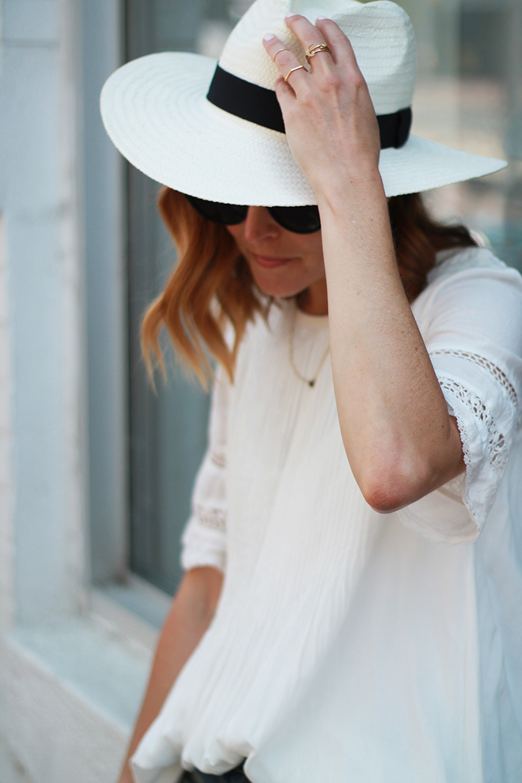 WEARING: Joe Fresh Wide Brim Panama Hat (sold out, similar) | Wilfred Sonore Dress (gifted) | Rag & Bone Boyfriend Shorts (on sale, I recommend sizing down) | Agape Hesed Leopard Pouch | Seavees White Sneakers (similar) | Mejuri Black Heart Necklace (gifted) | Gramerci Design Rings | Hair by Cabello by Carolina
